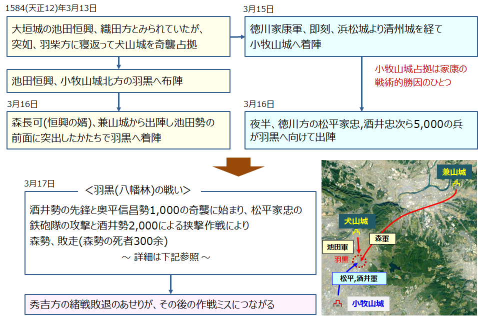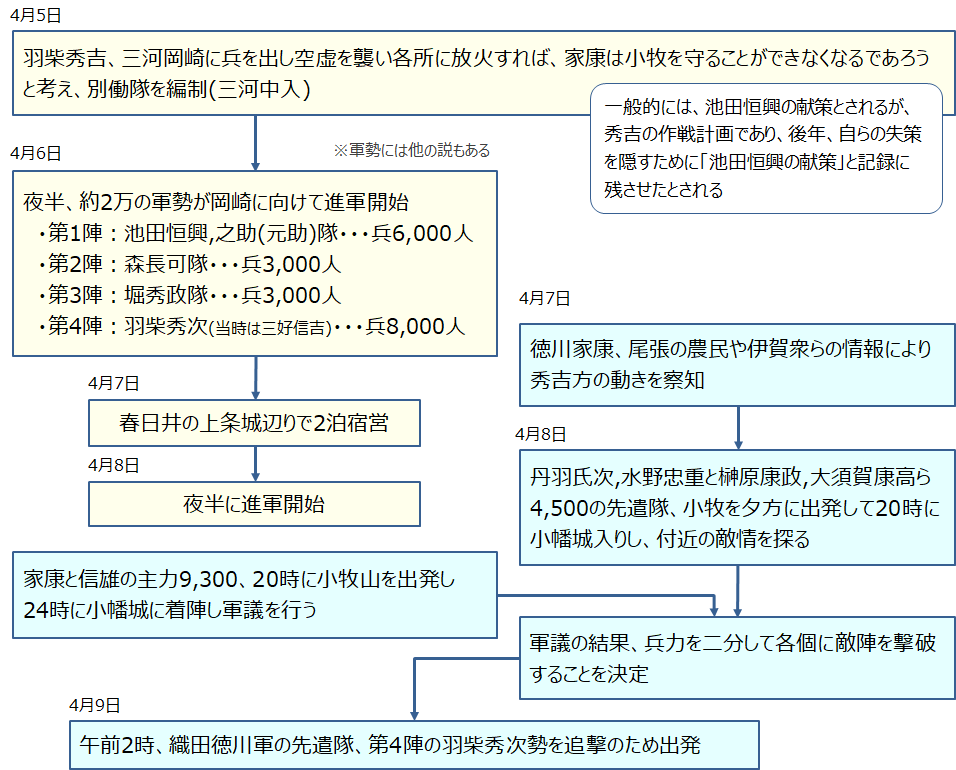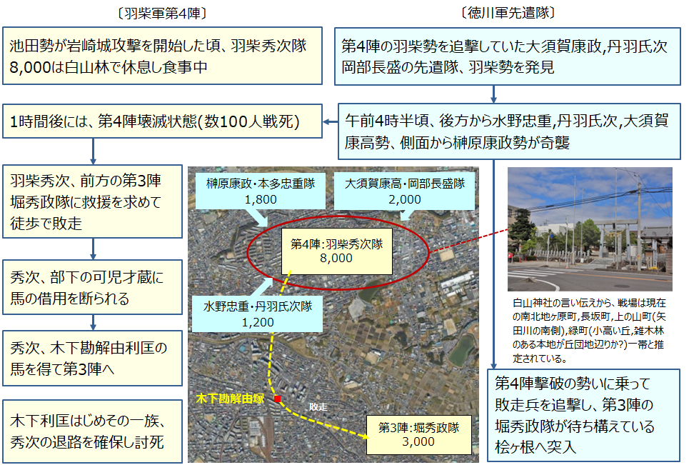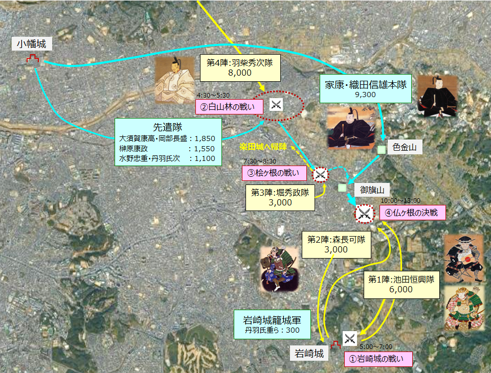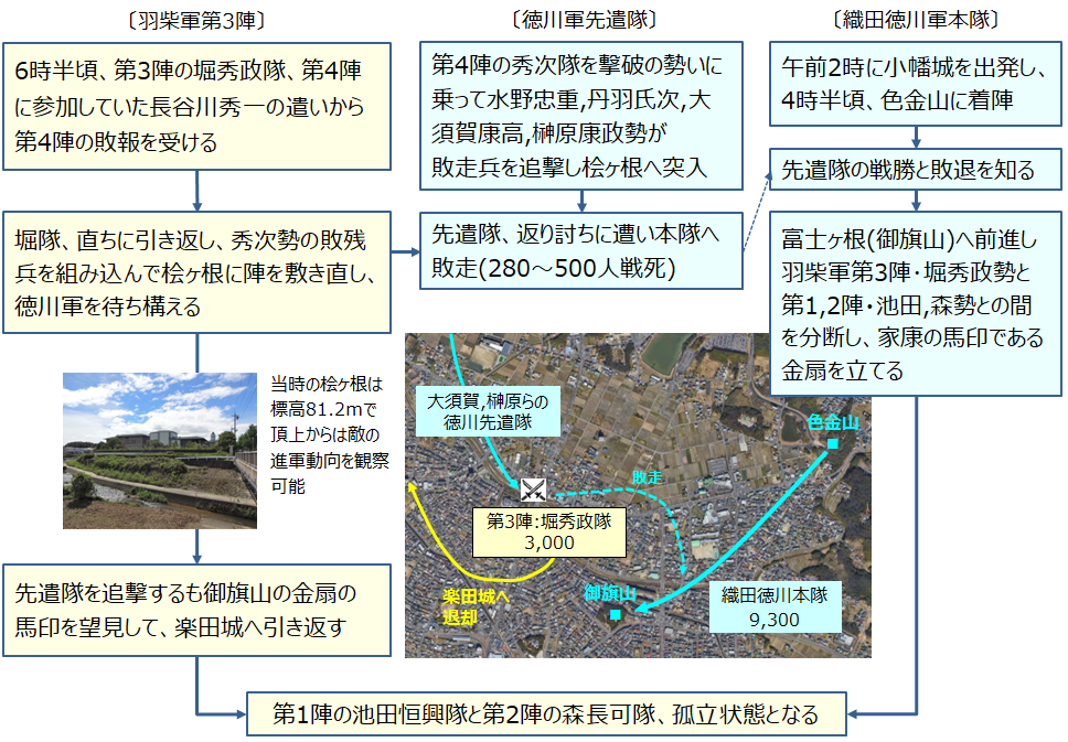■羽柴軍の三河中入と徳川軍の追撃(概要図)